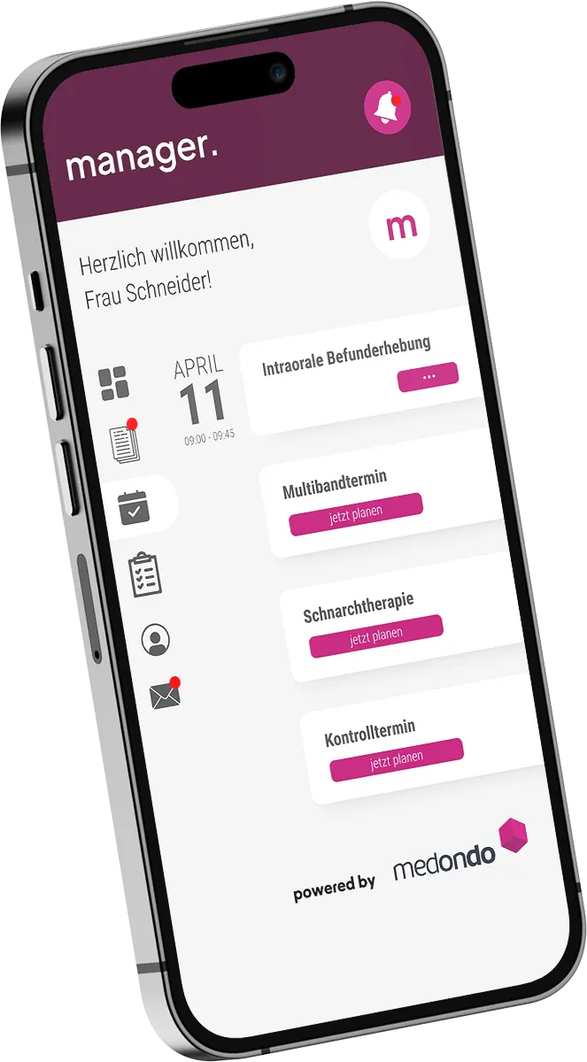 Ja, im medondo manager können Sie jederzeit einsehen, ob und wann Patient:innen Termine geplant haben. Im digitalen Terminkalender sind alle Termine übersichtlich dargestellt – inklusive Status wie „vereinbart“, „wahrgenommen“ oder „nicht erschienen“. So behält Ihr Praxisteam den Überblick über alle Behandlungsverläufe.