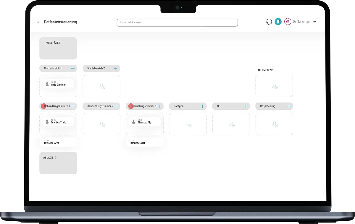 Die nahtlose Schnittstelle zum medondo manager ermöglicht einen reibungslosen Patientenaufruf – direkt im Wartezimmer